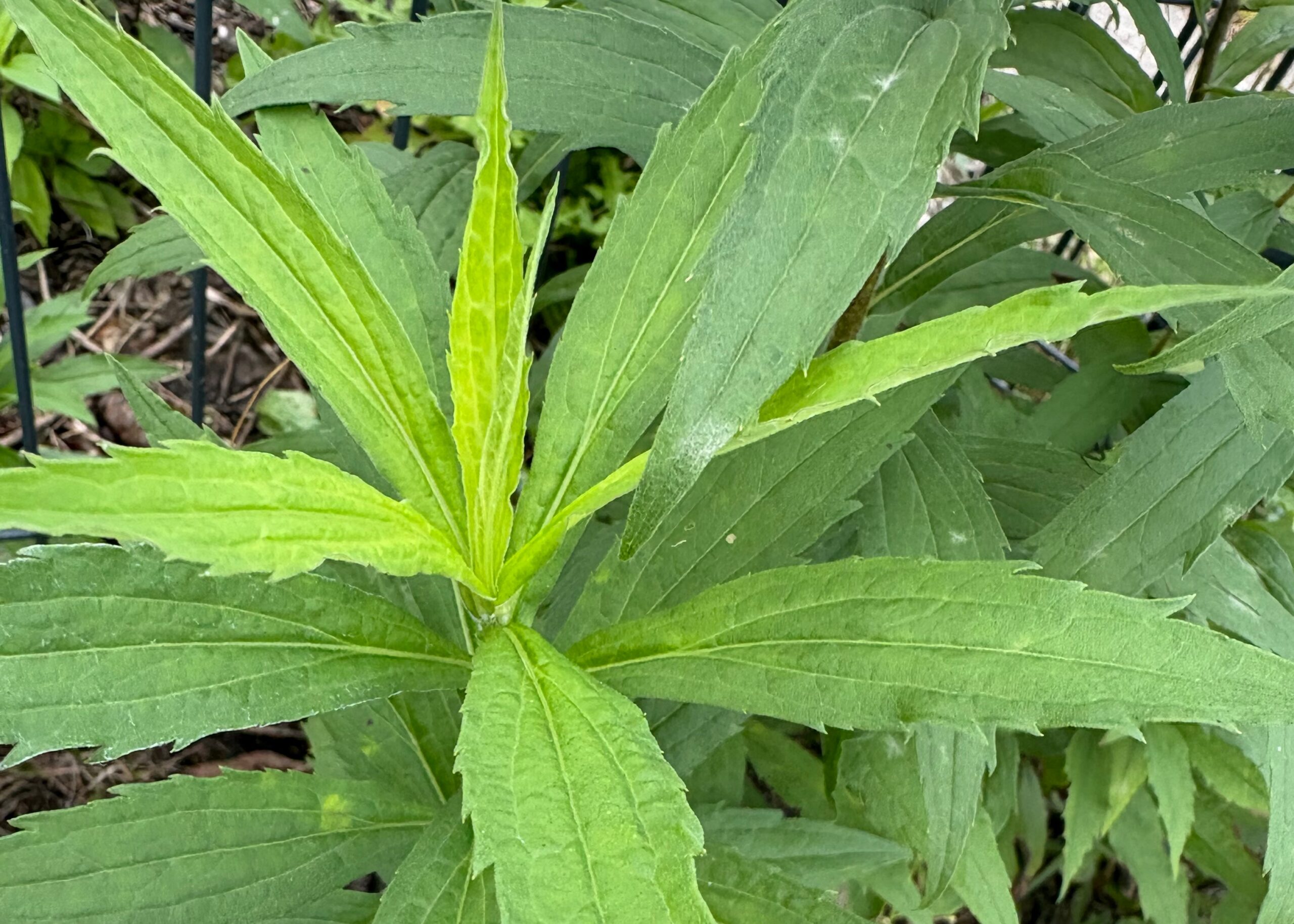 lancetowata blaszka liściowa, na brzegu ostro piłkowana